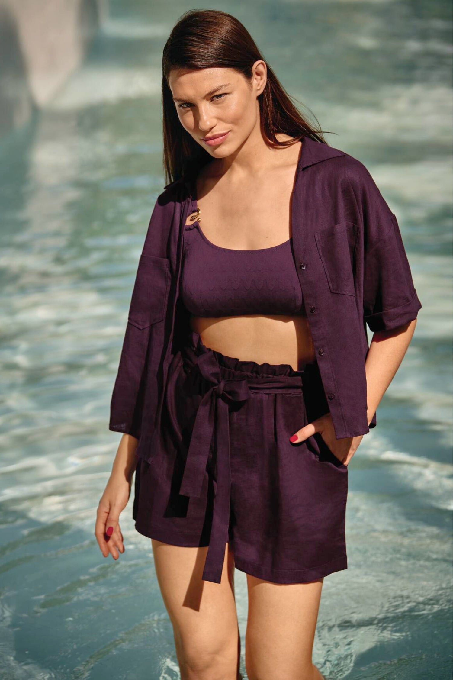 Entdecke das ultimative Strandoutfit von Anita: luftige Shorts kombiniert mit der Kitts Oversize Bluse. Die leichte Leinenmischung, die moderne cropped Länge und der lässige Polokragen sorgen für einen entspannten, stilvollen Look – perfekt für warme Tage zwischen Strand, City und Sundowner.