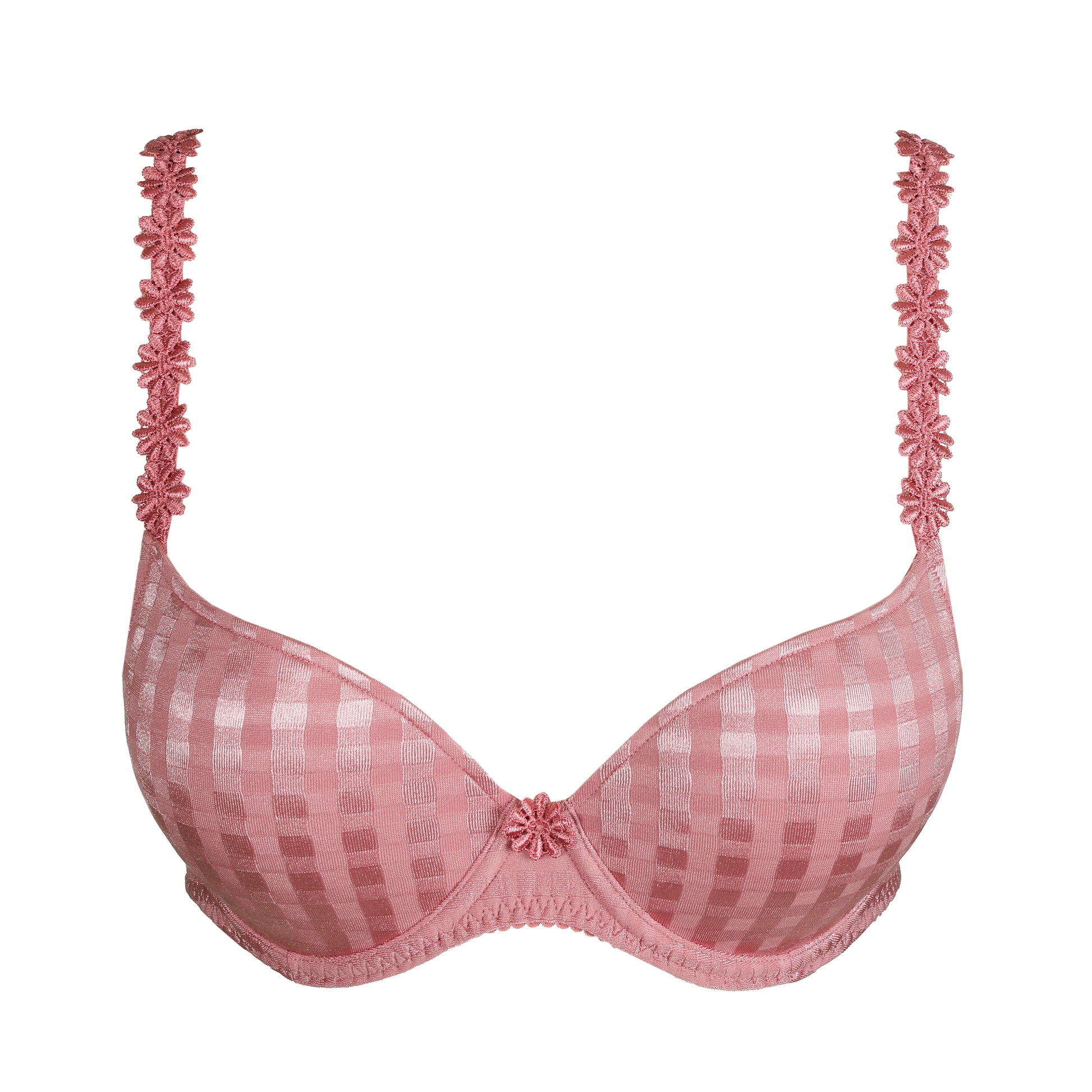 Dieser verführerische Push-up-BH formt ein sinnliches Dekolleté mit unterlegten, gepolsterten Cups und zusätzlichem Volumen im unteren Cup-Bereich. Der tiefere Ausschnitt lässt den oberen Brustbereich frei – für einen sexy, dennoch eleganten Look. Ein feiner Glanz im Stoff verleiht Tiefe und Lebendigkeit, während das ikonische, ton-in-ton gehaltene Karomuster mit zarten Gänseblümchen-Details für die typische, feminine Signatur sorgt.
