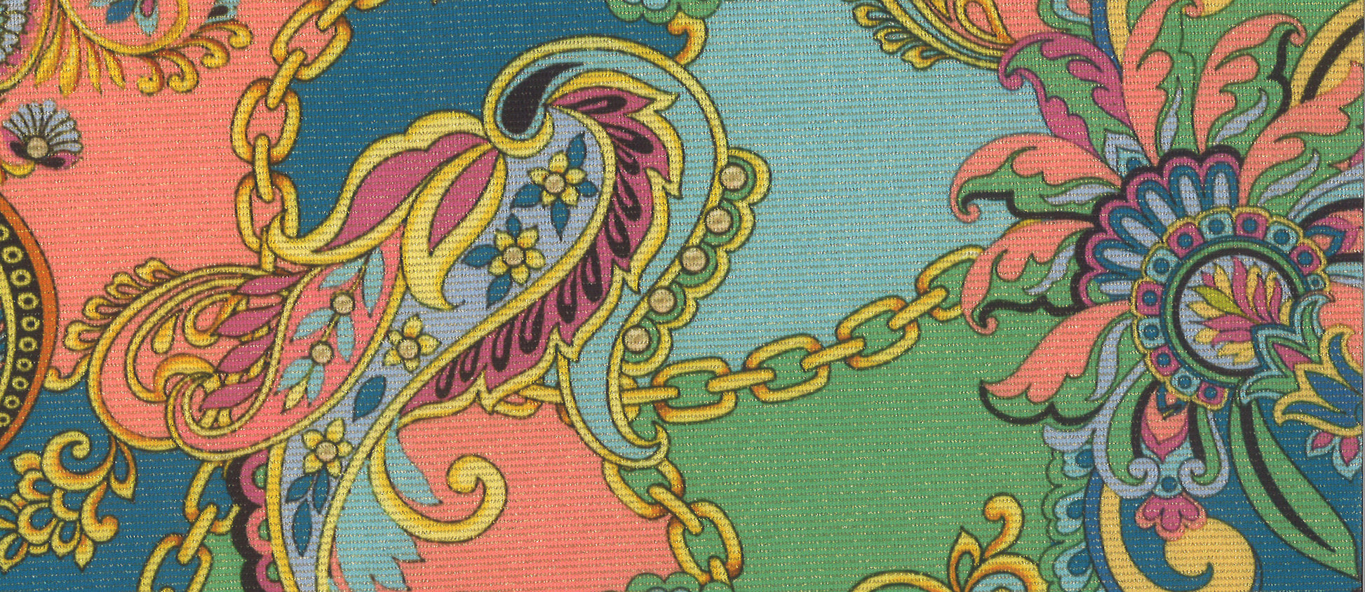 Italian Chic ist ein Paisleymuster in sanften Grün-, Blau- und Korallentönen. Luxuriös glänzend und sehr stilvoll.