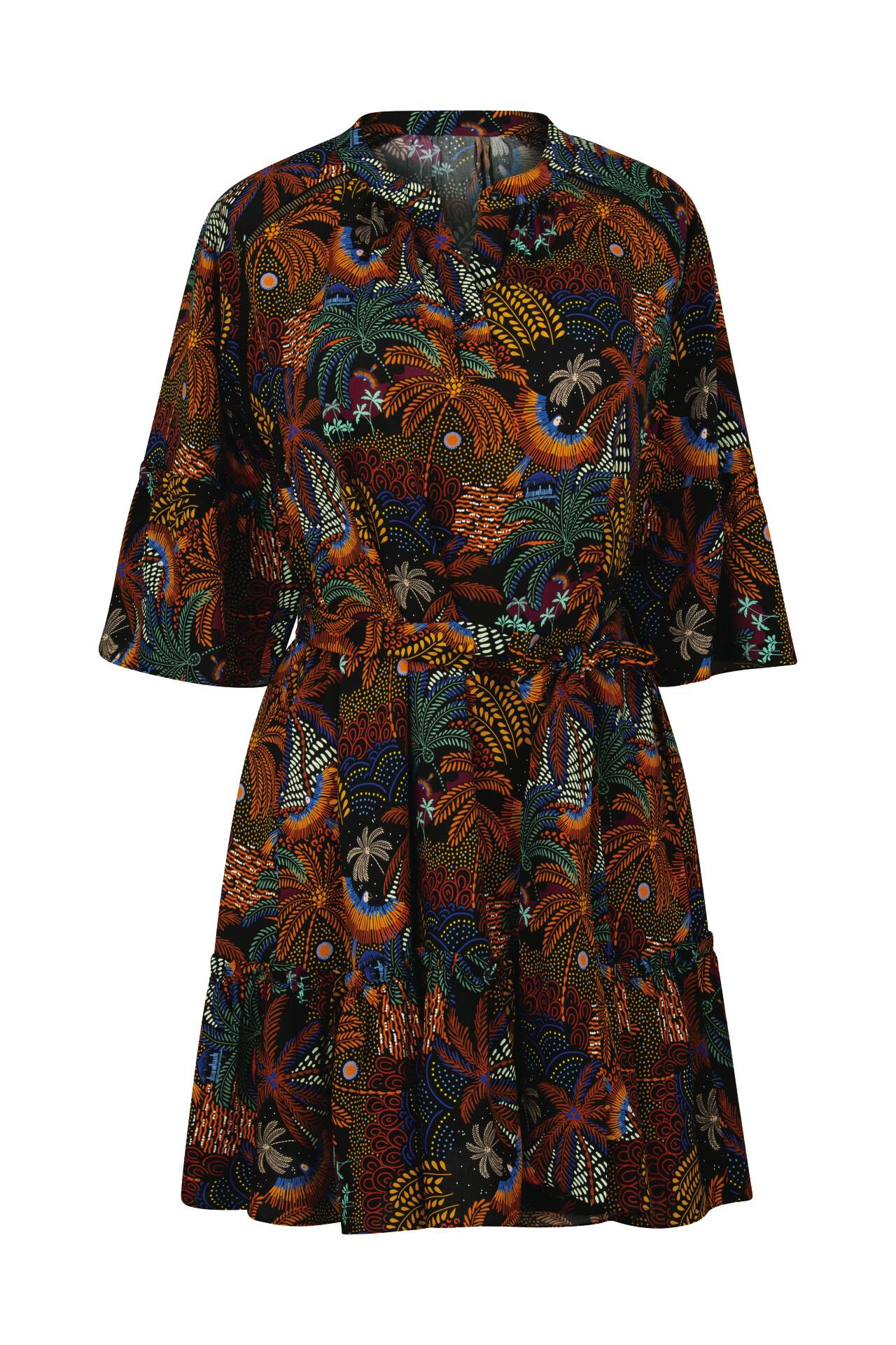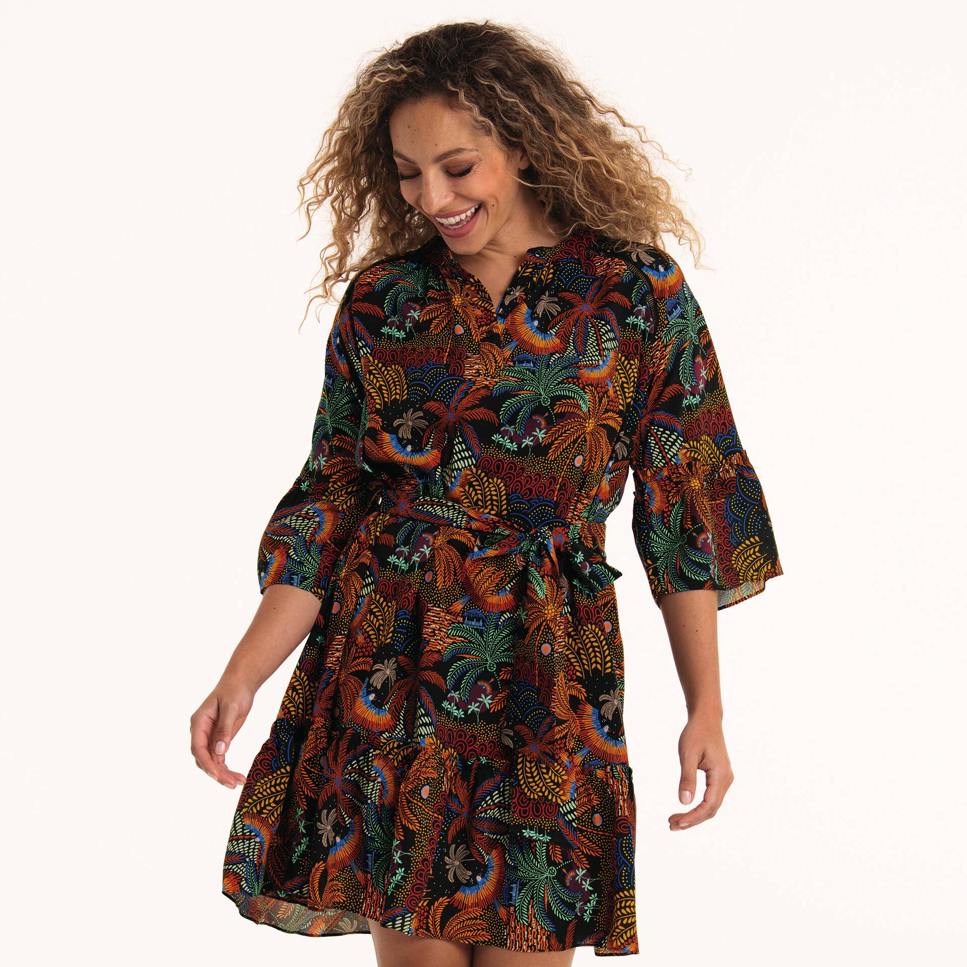 Erleben Sie sommerliche Leichtigkeit mit dem Sahara Kleid. Seine fließende Form, veredelt durch zarte Volants, verspricht Coolness und Eleganz an warmen Tagen. Details wie die feine Zierborte und ein eleganter Stehkragen runden das Design perfekt ab. Ein Kleid, das bezaubert.