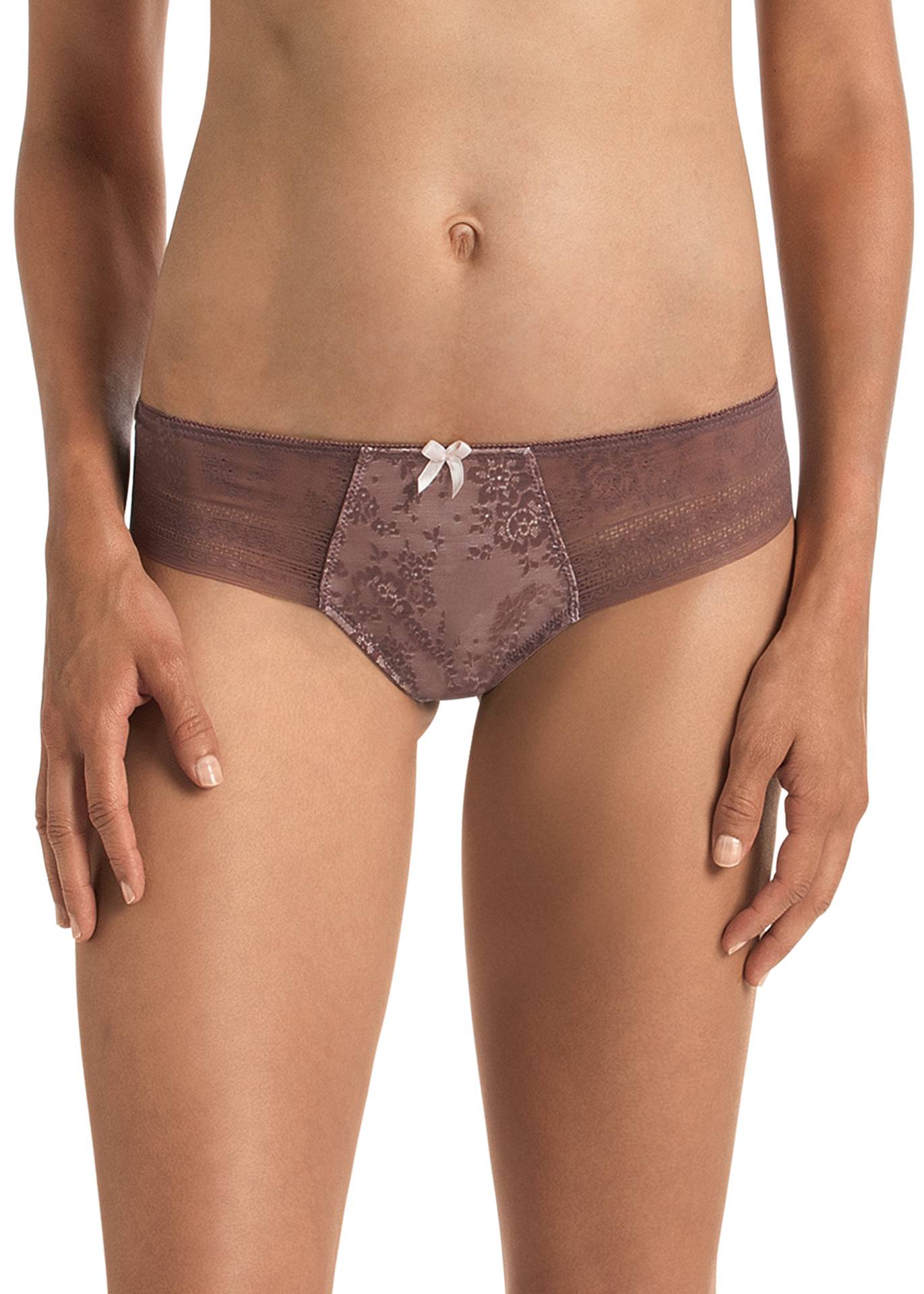 Passend zu den BHs der Serie Fleur, in der Farbe Berry, ist der String im Vorderteil aus Allover-Spitze und mit Mikrofaser-Charmeuse unterlegt.