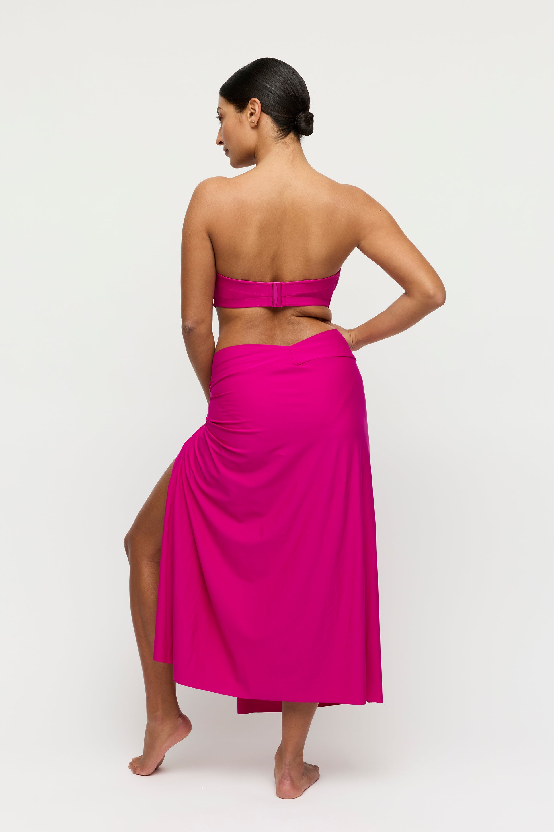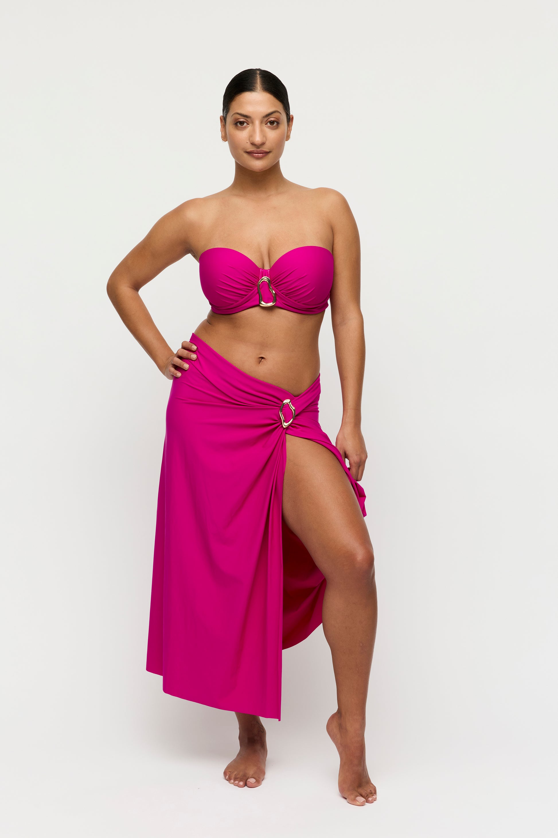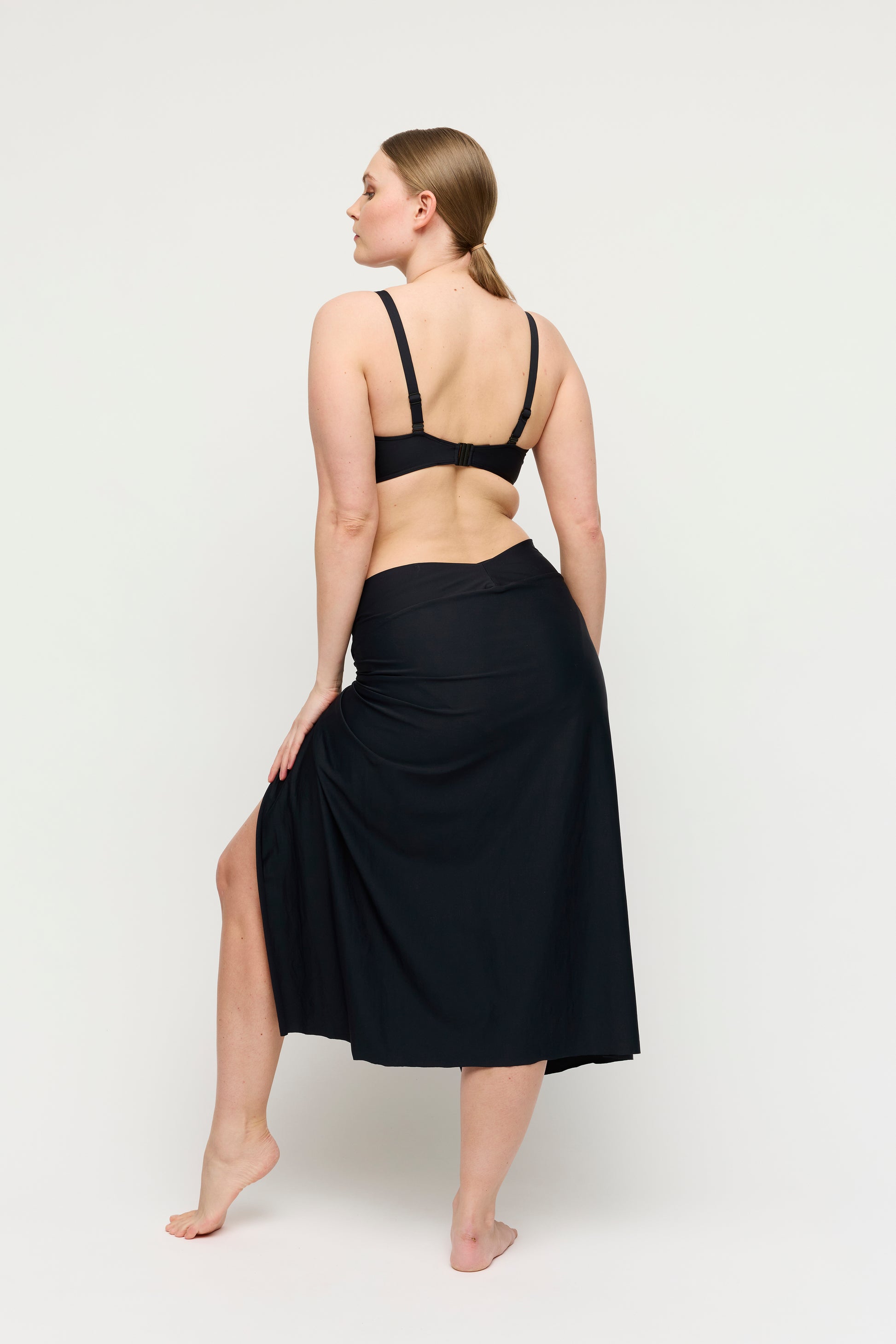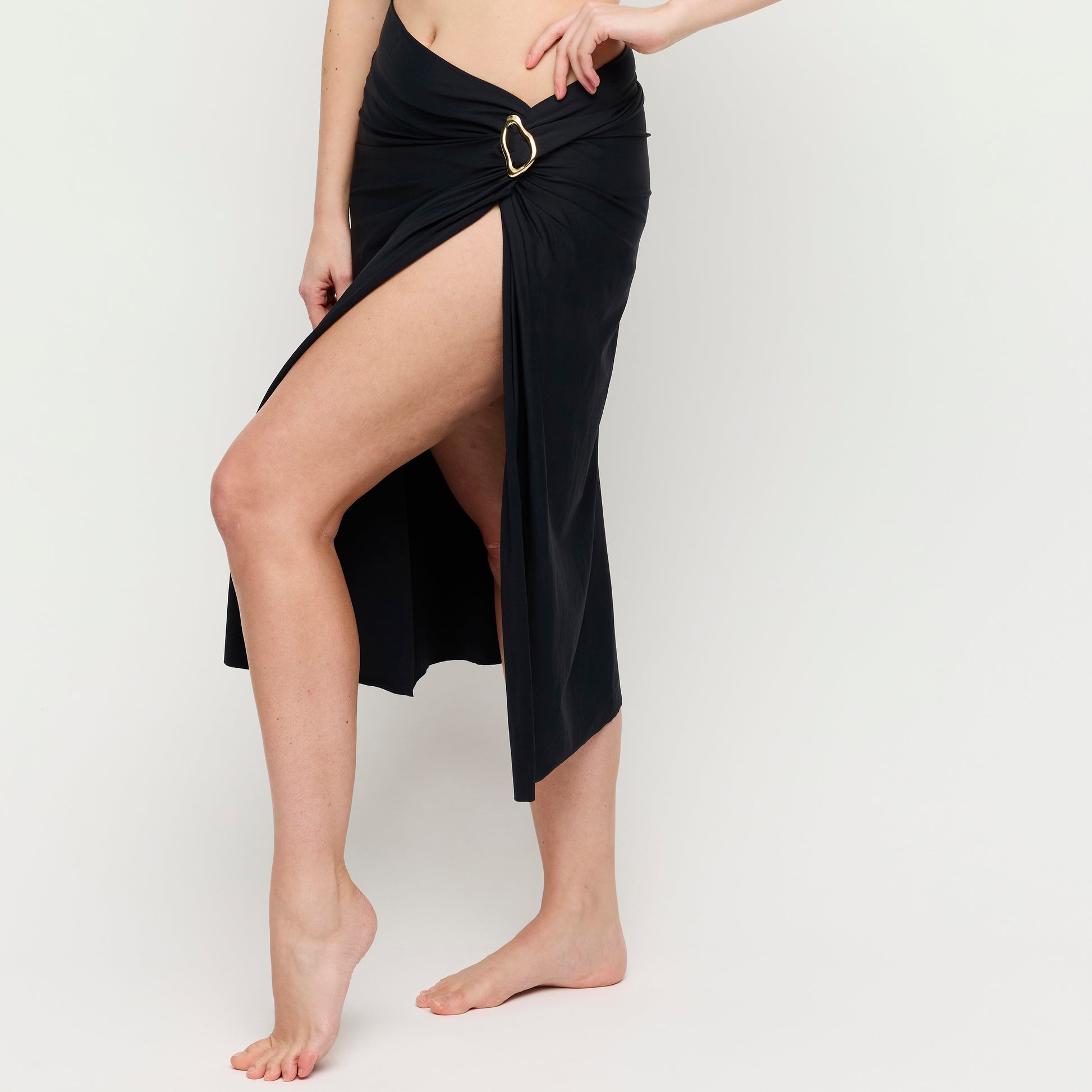 Langer Rock mit hohem Schlitz, am Strand ebenso schön wie als Teil deines Sommeroutfits. Luxus pur in zeitlosem Schwarz